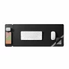 Reversible Desk Mat with a detachable wireless charging panel that fast charges your smartphone and earbuds simultaneously. Features water-resistant vegan leather on one side and plush felt on the other side.